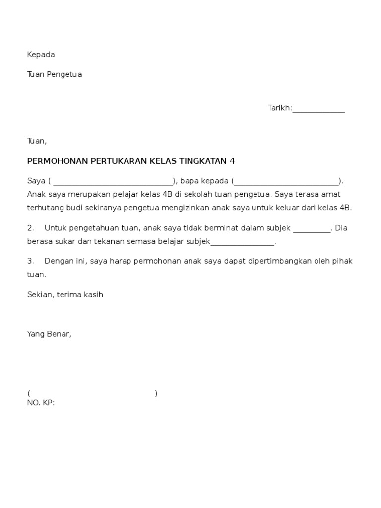 Contoh Surat Rayuan Pertukaran Kelas Tingkatan 4 Selangor G Otosection